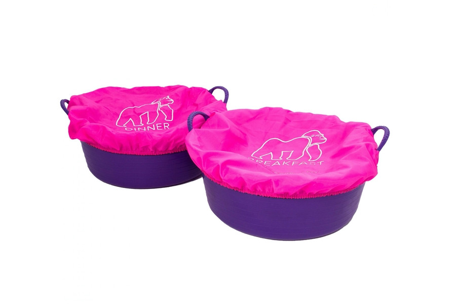 Die Breakfast und Dinner Abdeckungen in pink von Red Gorilla sorgen dafür, dass das Futter für Dein Lieblingspferd frisch und geschützt bleibt. Die Abdeckungen sind aus einem elastischen Material gefertigt und liegen so passend an der Futterschale an.