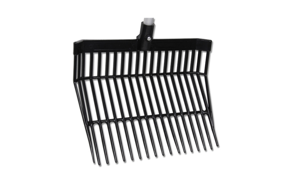 Bollengabel aus strapazierfähigem Kunststoff zur einfachen Entmistung von Torf- und Späneeinstreu. Die Seiten sind erhöht um ein seitliches Herausfallen zu verhindern. Ohne Stiel.