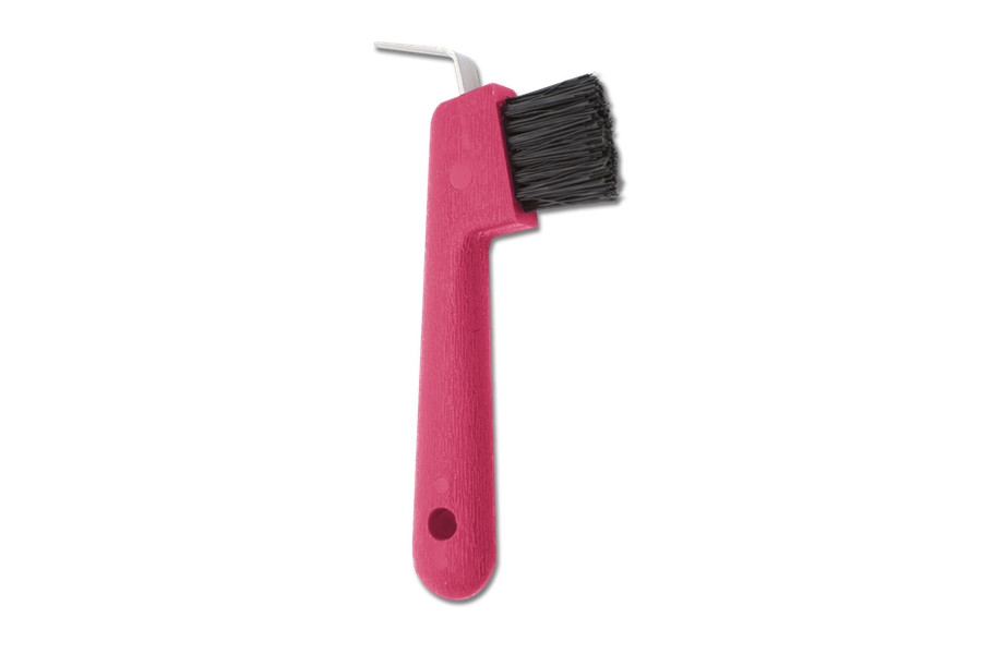 Stabiler Hufkratzer mit Bürste und Schieber. Einfache Handhabung zur gründlichen Reinigung der Hufe.