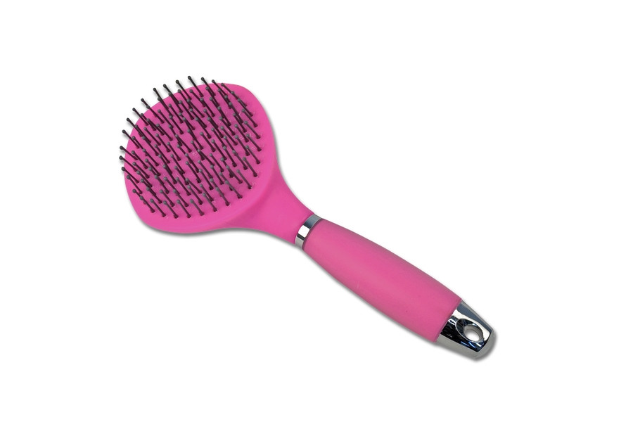 Formschöne Bürste zur sanften Pflege der Mähne mit abgerundeten Kunststoffnadeln. Der Gelgriff passt sich ergonomisch an Deine Handfläche an.