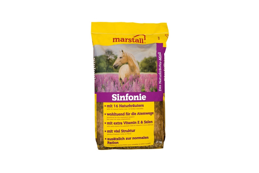 Das Wissen um die Kraft der Kräuter ist so alt wie die Menschheit. Wir haben dieses Wissen in die Rezeptur einfließen lassen und mit marstall Sinfonie ein aromatisches, haferfreies Kräuter-Müsli entwickelt, das das Beste des Kräutergartens in naturbelassener Form vereint. Ätherische Öle vitalisieren das Herz-Kreislaufsystem und regen den Stoffwechsel an. So steigen Wohlbefinden und Leistungsfähigkeit des Pferdes. Darüber hinaus befreien die enthaltenen Kräuter die Atemwege und weisen antioxidative, entzündungshemmende, immunmodulierende und harntreibende Eigenschaften auf. Zum Schutz der wertvollen Inhaltsstoffe sind die Säcke von marstall Sinfonie mit einer Doppelmembran versehen.
