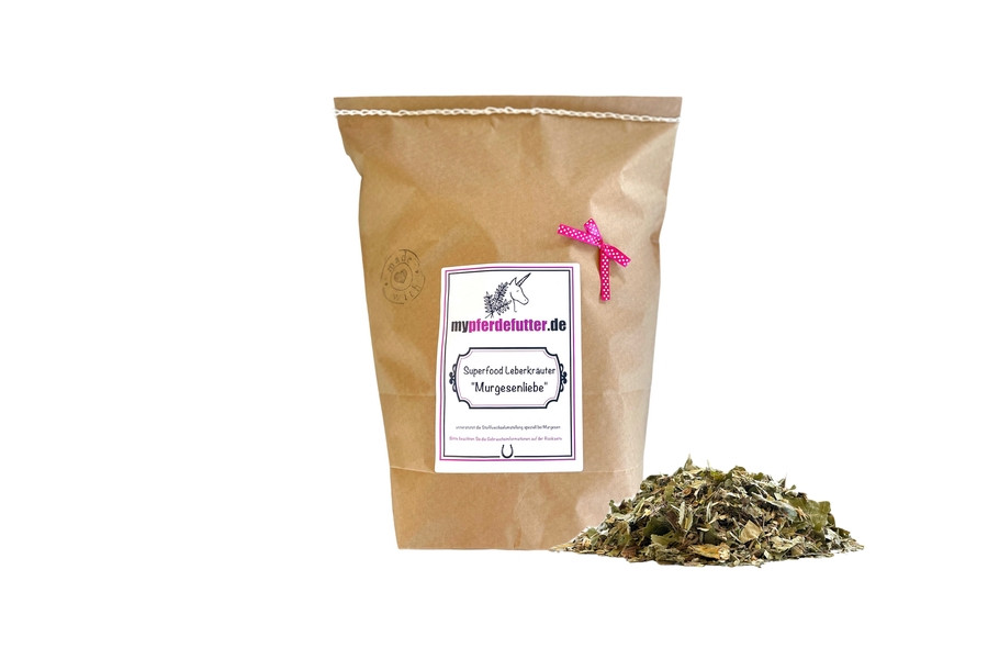 Superfood Leberkräuter „Murgesenliebe“ ist ein Ergänzungsfuttermittel für Pferde und speziell für Murgesen. Die Kräuter und Samen stärken die körpereigene Stoffwechwechselfunktion. Hierdurch wird den Murgesen die Umstellung von den italienischen Weiden auf unsere Wiesen und Heufütterung erleichtert.